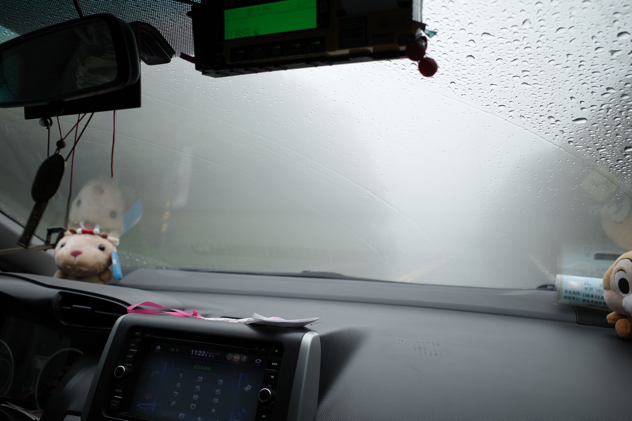 山を抜ける道の途中・・・ドライバーの陳さんも心配気.