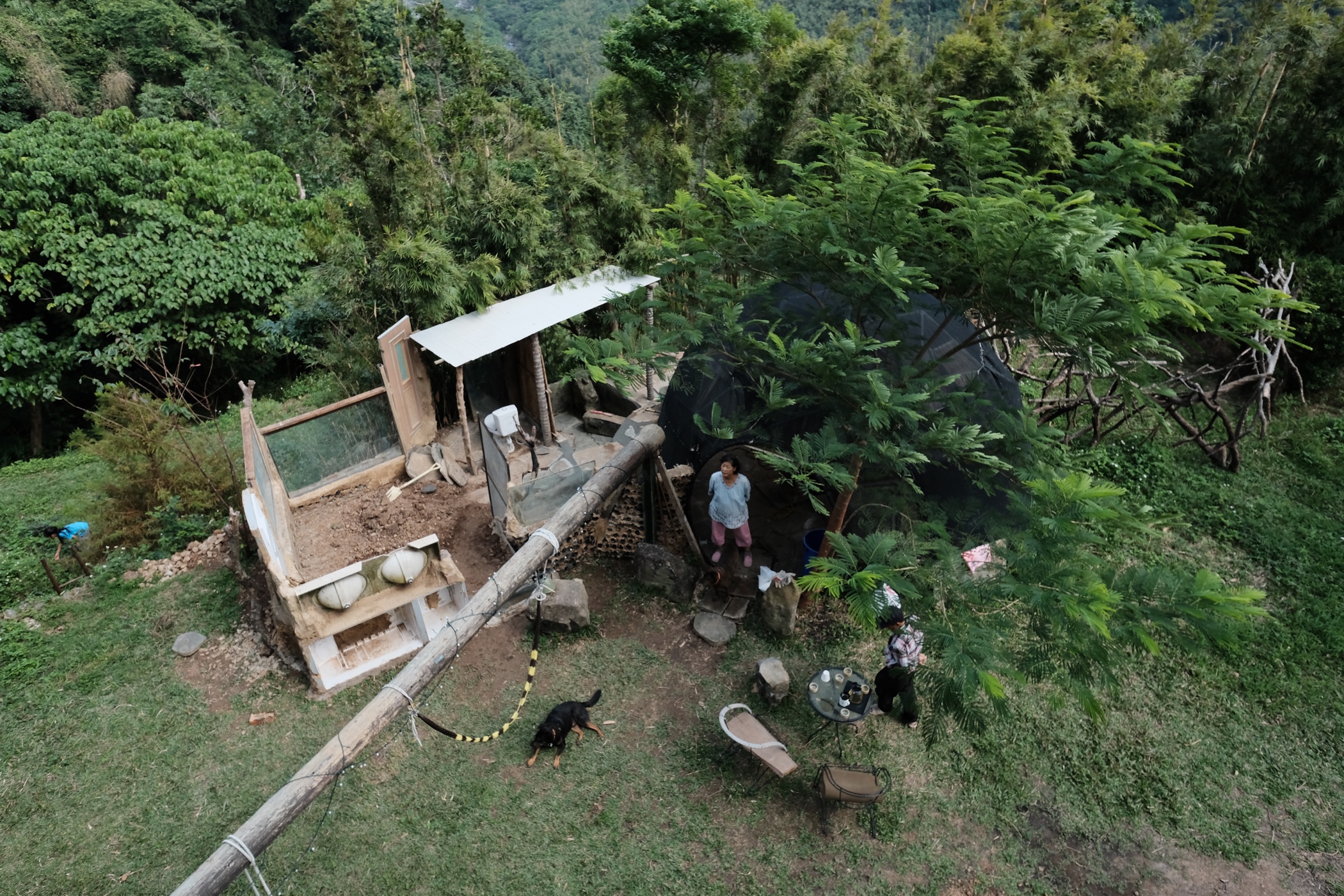 農業用のネットを使った質素な造りであるが,自然環境との距離感が良く,木陰のようでもあり,洞穴ようでもある.光や影が美しく,心地良く風が抜ける.