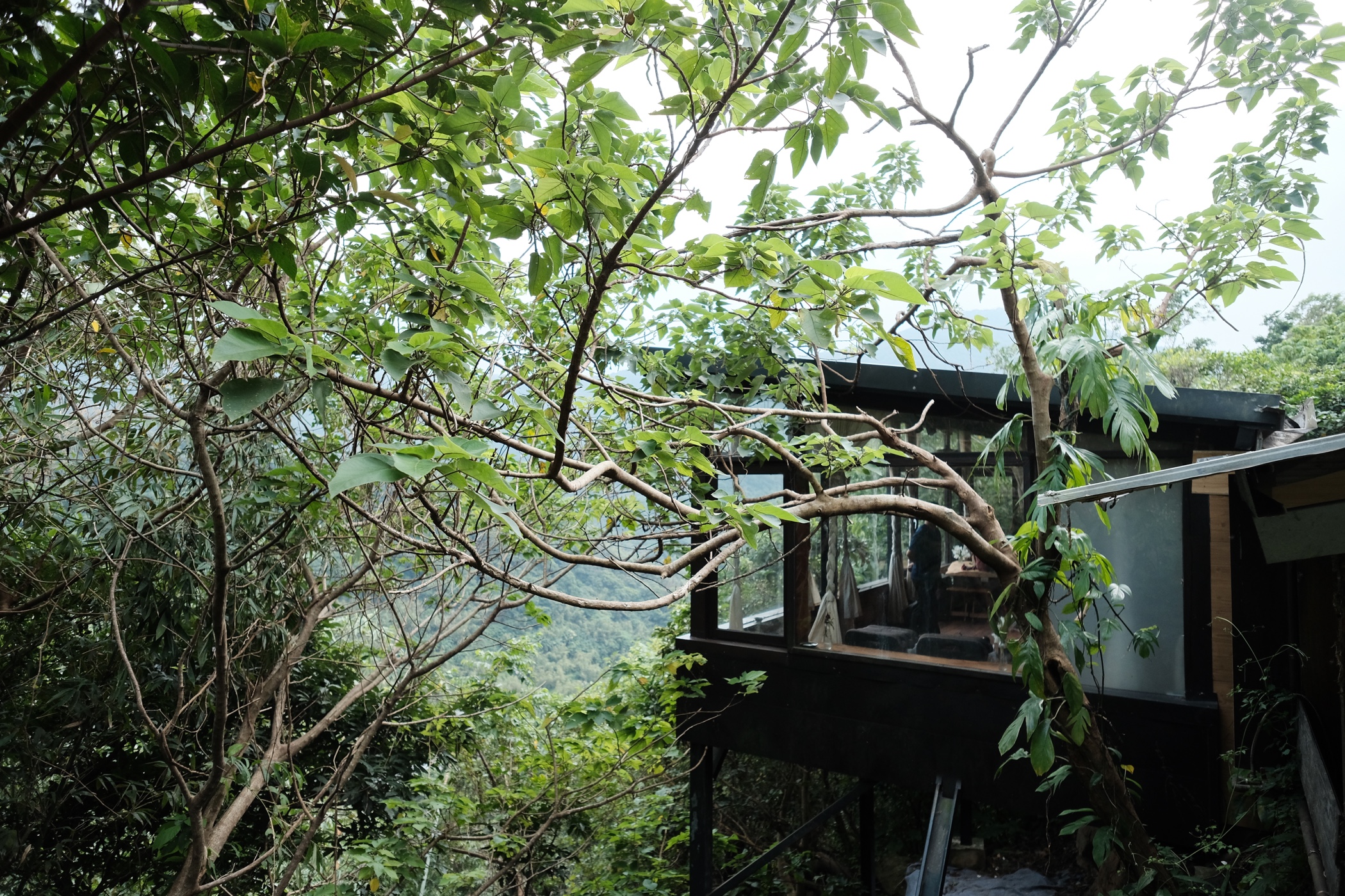 崖に向かって突き出した家はガラス張りで,山々を見渡すことができます.雨が降ると目の前に虹が掛かるらしい.