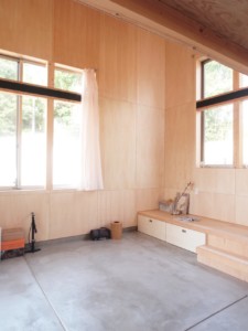 内部空間については,アウトドア派でアクティブな夫婦と活発な娘さんの自由で柔軟な使い方を想定し,居場所と余白をキーワードに空間を考えた.