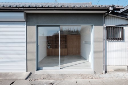 郊外の古い住宅地,広い敷地に建つ車庫の一部を改築し事務所とする計画である.