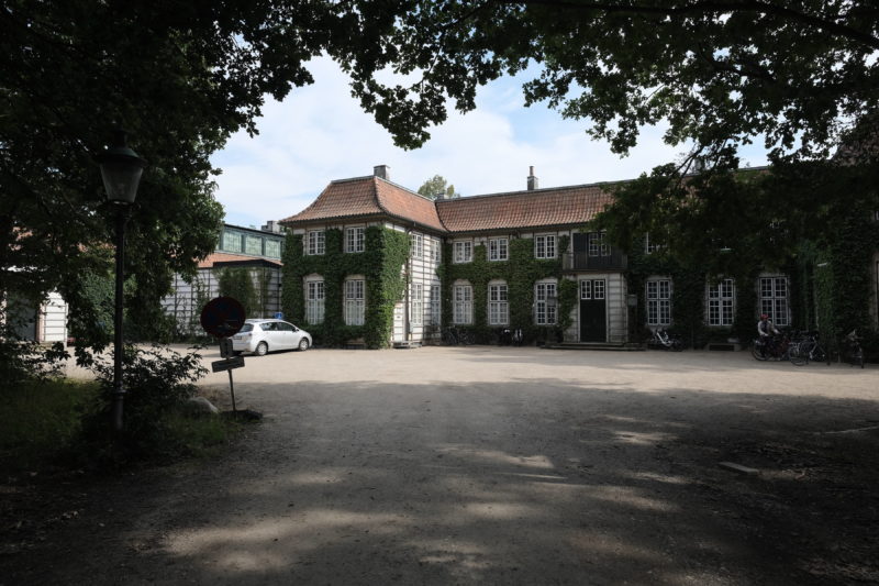 外壁はグレーの板張りで,ここの建築群の中で唯一,陸屋根が採用されている.