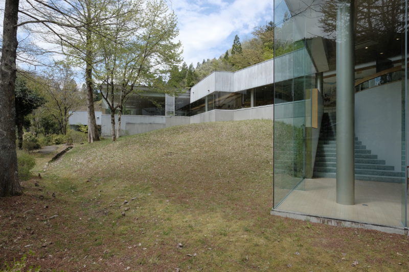 その他に,池に浮かぶガラス張りのレストランや,茶室など,意匠の異なる複数の建築が分散して配されており,