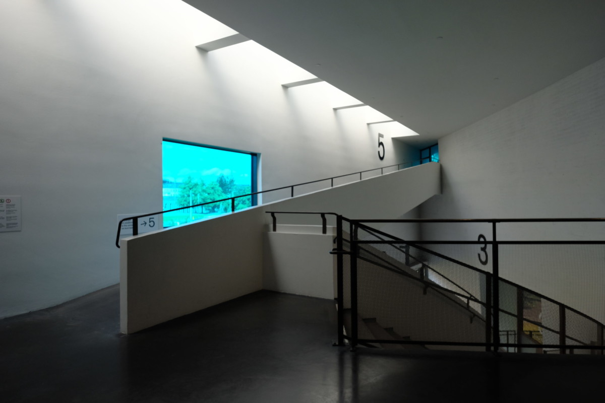 建物の奥と手前の両側に設けられた階段室もなかなか面白い空間となっています.